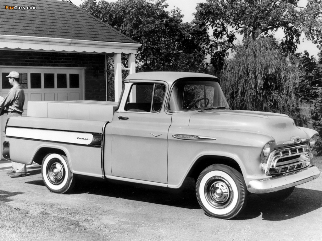 Chevrolet 3100 Cameo Fleetside Pickup (3A-3124) 1957 wallpapers (1024 x 768)